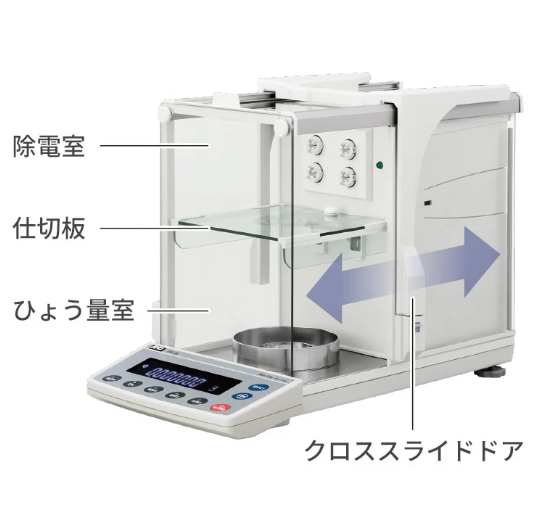 • 沒有雙層擋風(fēng)也能實(shí)現(xiàn)高精度、寬的量量室,如果拆下隔板就可以用燒杯和汽缸進(jìn)            行量量