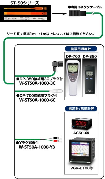 | 連接器電纜 (新型) W-ST50A-1000-3C (用于DP-350連接) | 連接器電纜 (新型) W-ST50A-1000-6C (用于DP-700連接) | 連接器電纜 (新型) W-ST50A-1000-Y3 (Y 接線片端子) | 便攜式溫度計(jì) DP-350 | 便攜式體溫計(jì) DP-700 | |